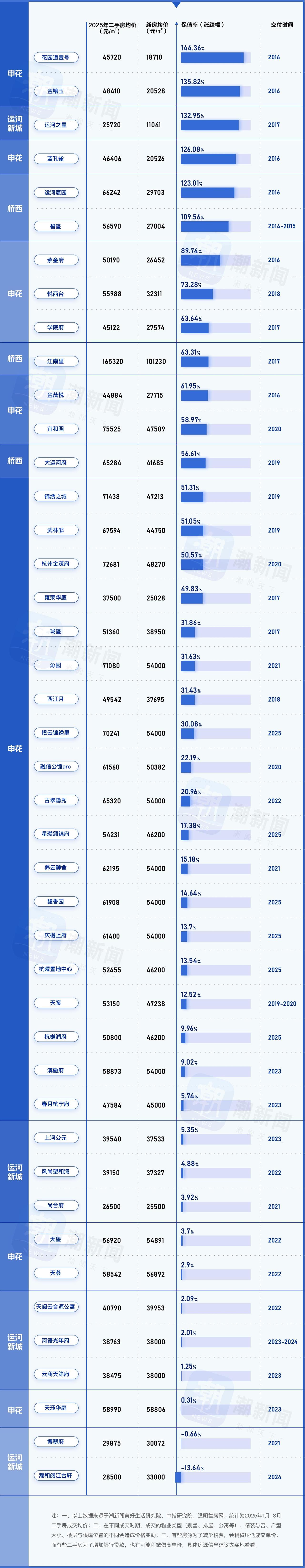 桥西、申花、运河新城,皆是杭州主城区近些年最受欢迎的改善板块。在过去十年左右时间里,这三个板块新交付小区二手房价保值率如何?潮新闻美好生活研究院选取了40余个次新小区房价样本,为大家做参考。