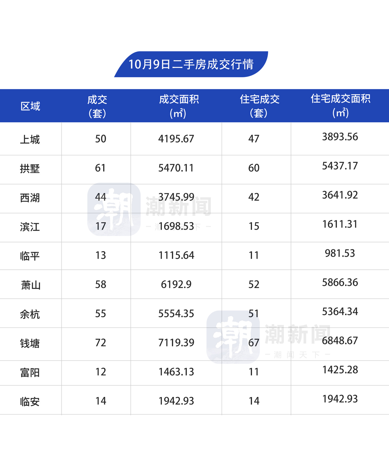 10月9日,杭州市区二手房成交396套