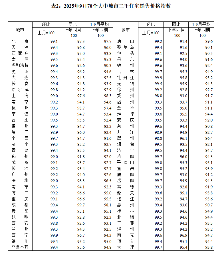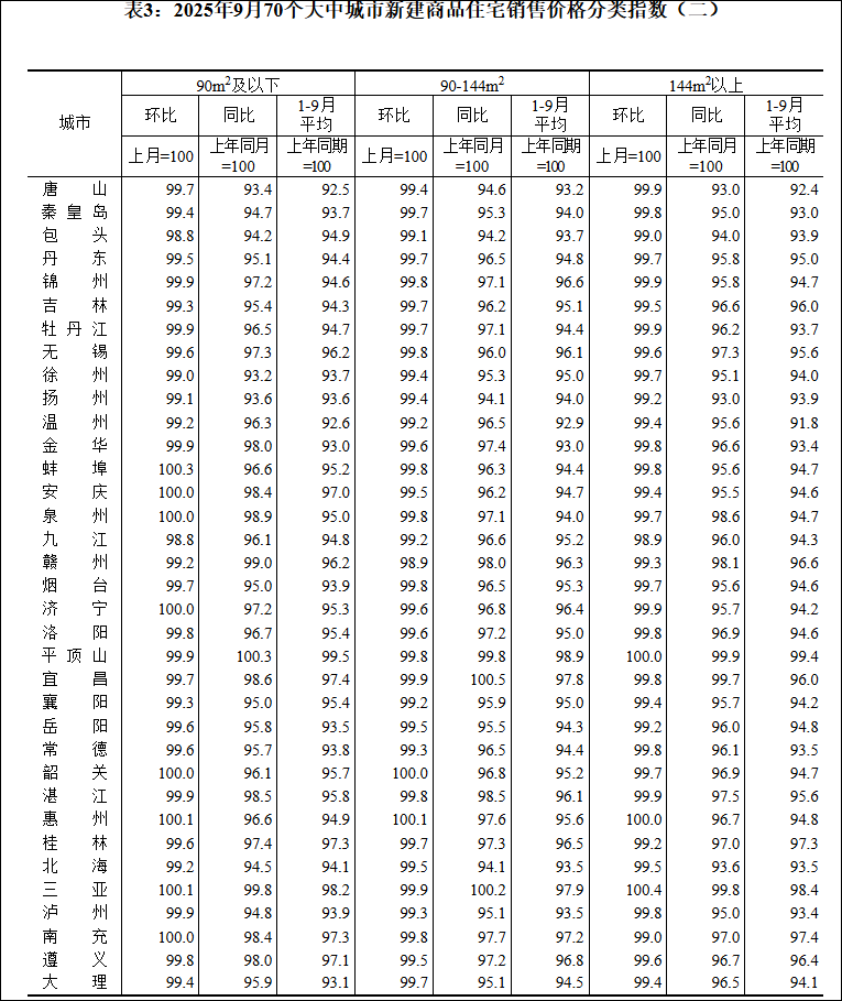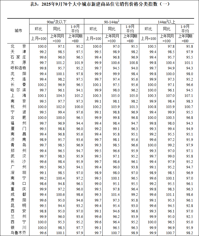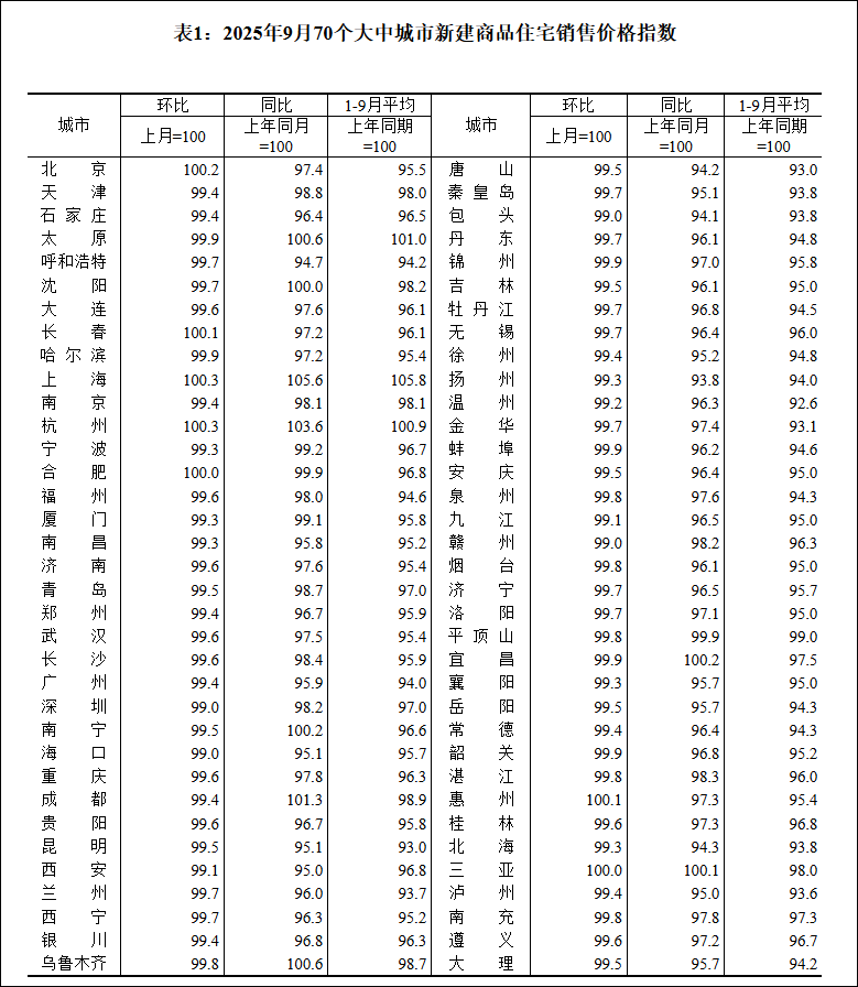 国家统计局城市司首席统计师王中华解读2025年9月份商品住宅销售价格变动情况统计数据