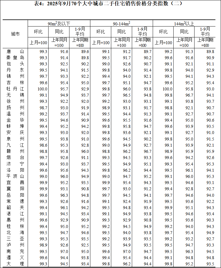 2025年9月份,70个大中城市中,各线城市商品住宅销售价格环比下降,同比降幅继续呈收窄态势。