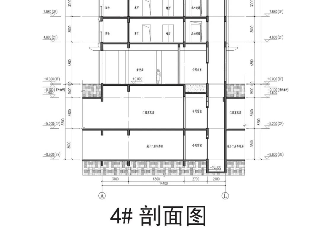 项目采用了架空平台的设计,高度达到5.1米,高层架空层层高4.88米,加起来相当于抬高了约10米。