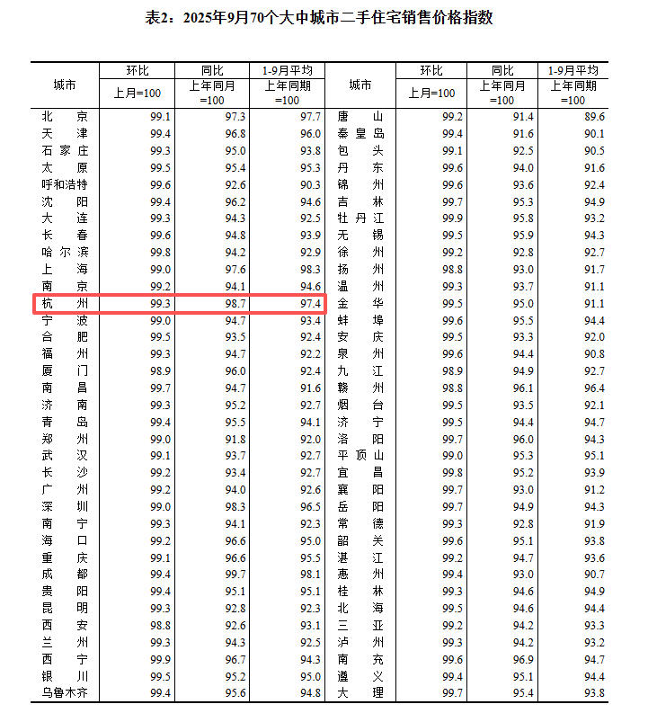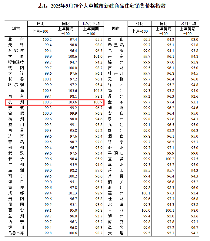 刚刚,国家统计局公布9月70个大中城市价格变动情况。从杭州方面来看,9月杭州新房价格环比上涨0.3%,同比上涨3.6%,新房价格连续两个月出现上涨;二手房价格环比下跌0.7%,同比下跌1.3%。虽然杭州二手房价格同比出现六连跌,但跌幅有所收窄。
