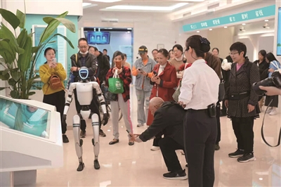 在钱江新城的智慧营业厅,电力“萌新员工”吸睛登场—— 人形机器人。