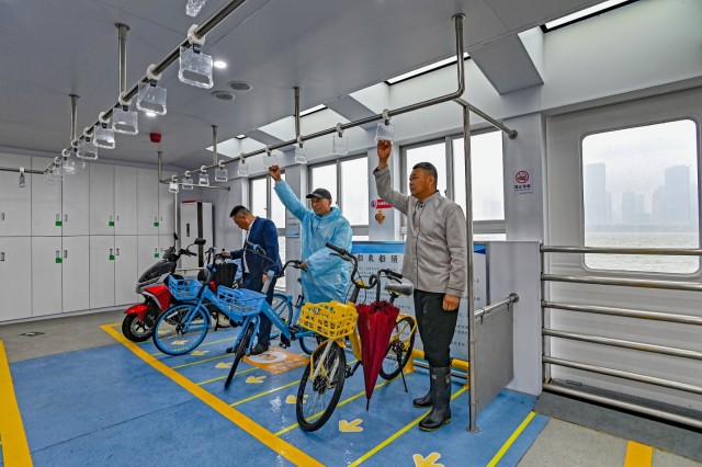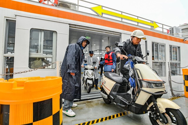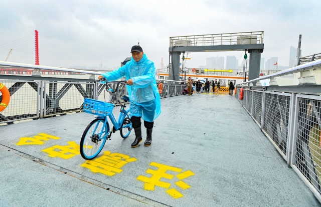 此外,轮渡运营时间为每日6:30(首)至18:30(末),早晚高峰时段每15分钟一班,平峰时段每30分钟一班。符合《中华人民共和国道路交通安全法》规定的非机动车,包括自行车、人力三轮车、符合新国标的电动自行车、残障人专用三轮车等均可搭乘。自行车及电动自行车车主可携同一名12周岁以下未成年人乘船。