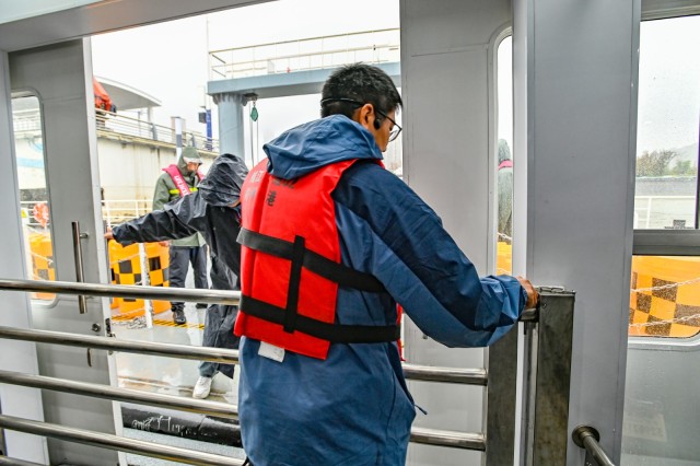 过江需要多长时间?记者掐表算了算,渡船横跨江面,大概需要15分钟,从进入候船区到完成航行,全程耗时约25分钟。