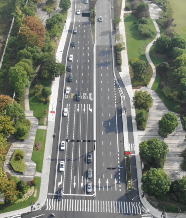 此次改造以提升道路品质、优化通行功能为核心目标,通过加固翻新机动车道,新建、翻建非机动车道与人行道,对路面沥青层实施整体升级,夯实道路通行基础。工程同步完善雨水排放设施,新增智能交通管道与交通护栏,全面提升道路通行条件、排水能力与安全保障水平。同时,新增了3500平方米的灌木地被植物,营造出更加安全、便捷、舒适的出行环境。