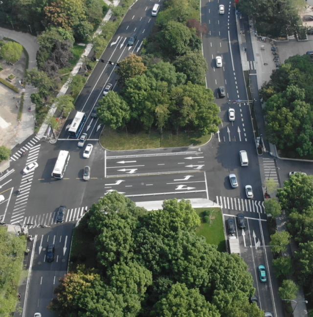 道路西起绕城高速,东至龙王沙路,全长1466米,红线宽40米。施工内容主要涵盖道路基层与面层翻建、公交港湾停靠站优化、雨水管道及配套管线铺设、交通标志标线与智能交通设施完善、景观绿化改造等多个方面。作为之江地区主要的交通出行道路,施工路段机动车与非机动车通行流量大。在施工过程中,为最大限度降低施工对交通的影响,采用合理开口、分段施工的方式,多次协调各职能部门,动态优化交通组织方案,全力保障道路通行需求。