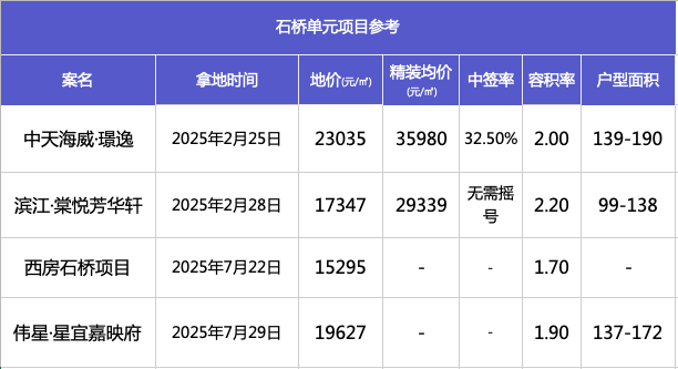 从宅地供应量看,石桥华丰板块竞争不小。