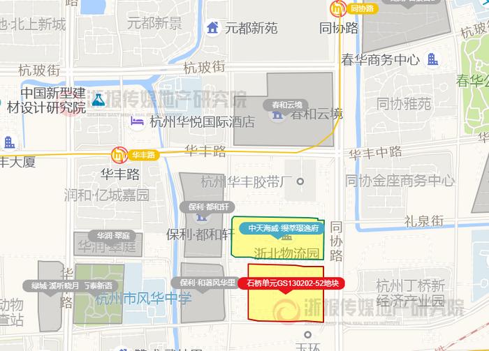 这是石桥华丰板块今年出让的第5宗宅地。石桥单元GS130202-52地块,距离地铁3号线同协路站约800米,北面与板块最高楼面价项目,即中天海威·璟逸一路之隔。