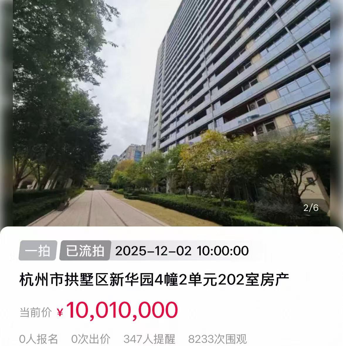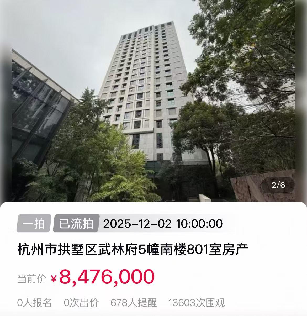 而市中心寸土寸金的武林广场板块则有两套房龄10年左右的中生代豪宅法拍,分别是一套建筑面积173.27㎡的武林府房源,以847.6万元起拍,折合起拍单价约4.89万元;另一套建筑面积200.33㎡的新华园房源,以1001万元起拍,折合起拍单价约5万元。起拍单价都不算高,但这两套最后却因为无人报名,双双流拍。