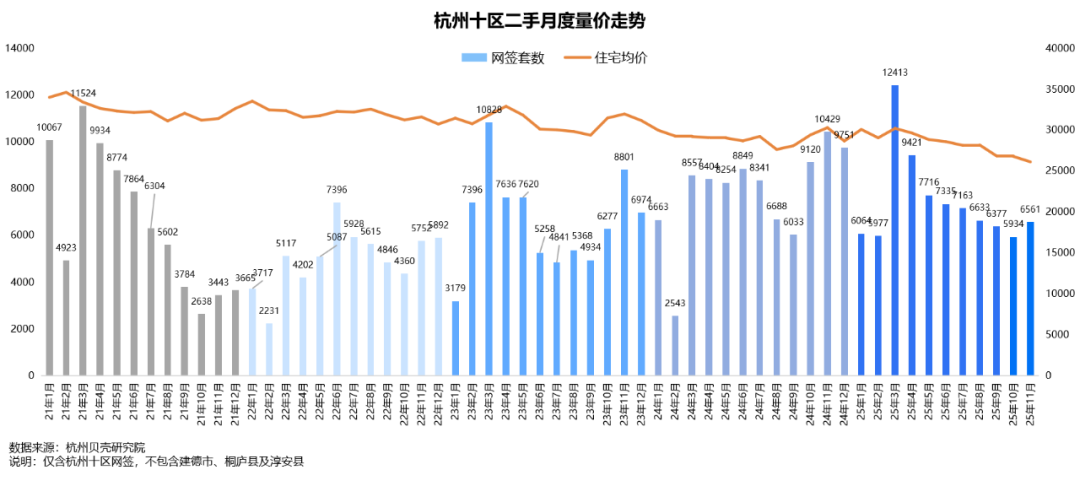杭州贝壳研究院的统计数据显示,11月杭州一共成交了6561套二手房,环比10月的5934套大幅上涨10.6%,终结了此前连续7个月下跌的趋势。
