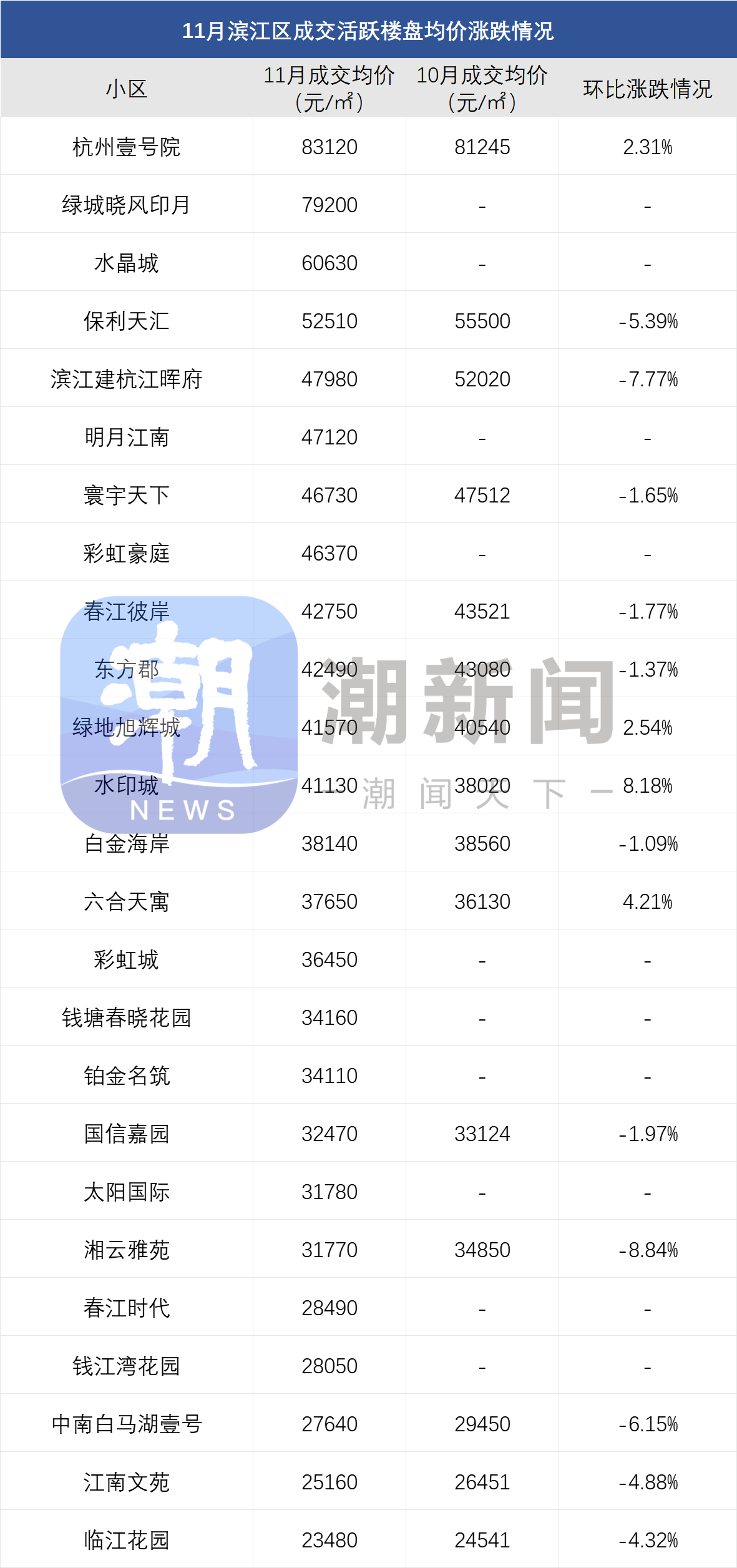 另外一方面,11月有成交的小区数量相比10月有了明显的增加。其中,不少“新面孔”出现在榜单中,大部分为非主城区刚需二手房。这些小区大部分价格已经回归性价比,成交量也有了起色。