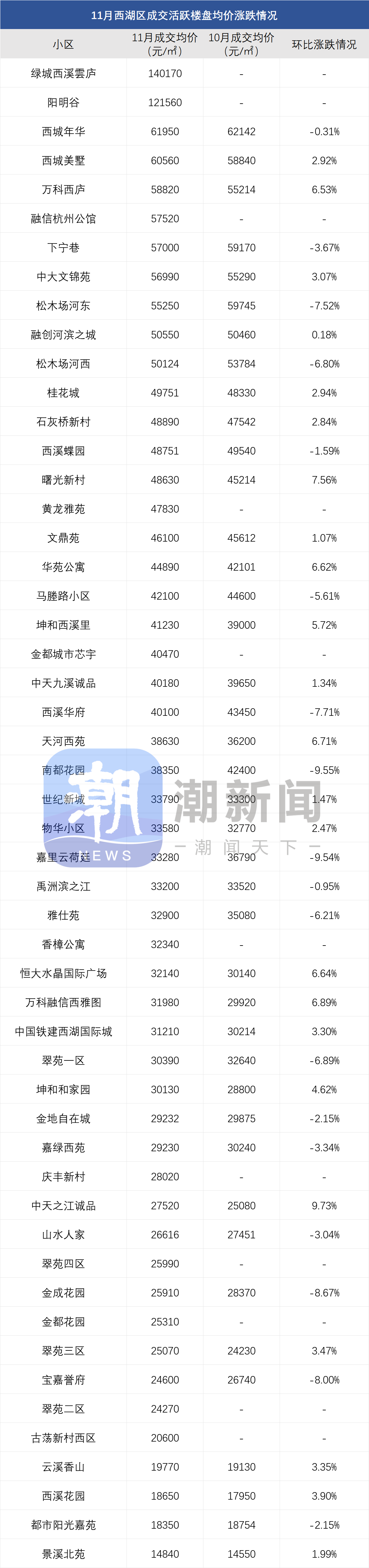 最新杭州二手房价涨跌榜:低总价房源撑起年底“翘尾”行情,最低7410元/㎡
