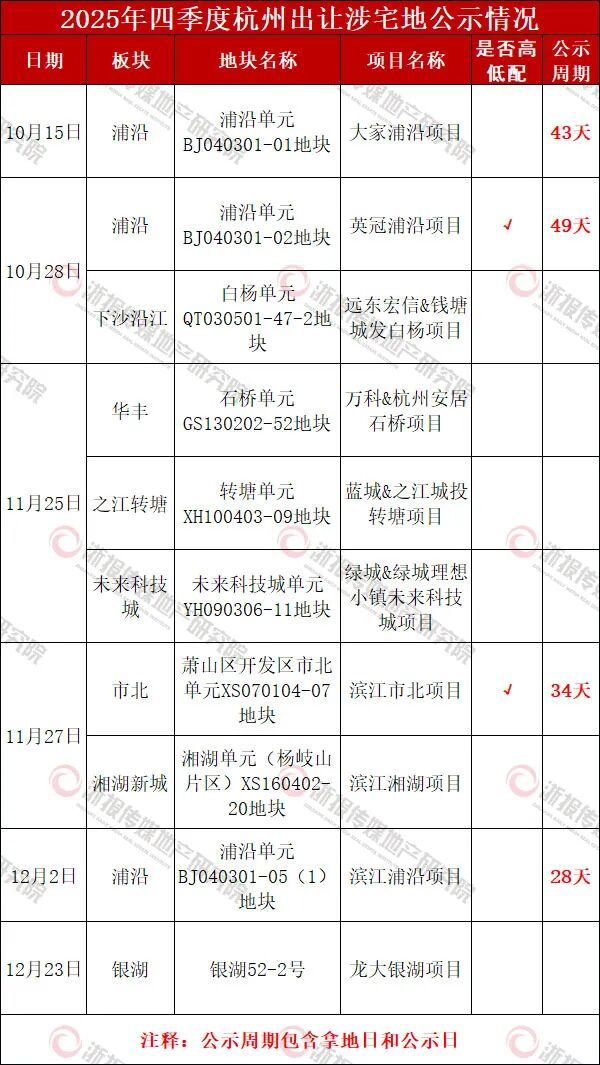 2025年杭州市区(市十区)共出让92宗涉宅地,其中共有80宗涉宅地在年内就完成了项目公示,公示率高达87%,平均公示周期为47.7天。未公示的12个项目,有一半为四季度出让土地。