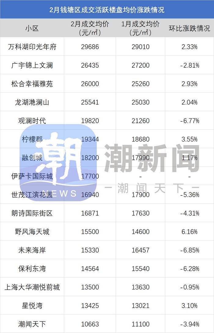 杭州最新二手房价涨跌榜出炉,部分超跌小区价格回弹