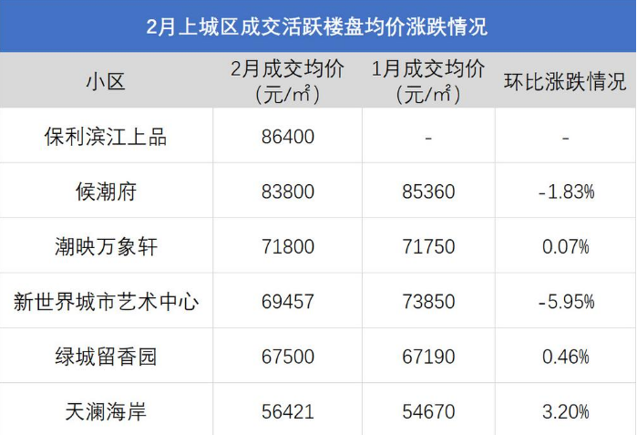国家统计局数据显示,12月杭州二手房价格环比下跌0.4%,同比下跌4.3%,与上年(1—12月平均)同期相比,跌了2.8%。从各城区成交均价前十榜单中可以看出,成交均价超过10万元/㎡的小区有武林壹号、西湖高尔夫别墅与绿城桃花源。其